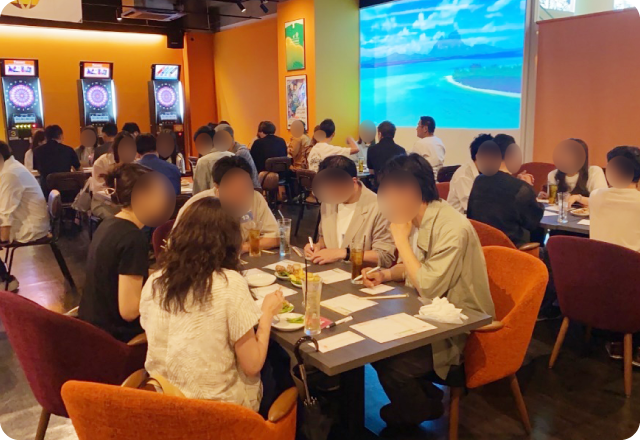 全国のおしゃれな飲食店を貸し切り、20~30代を中心に多くの男女にご参加いただいています。