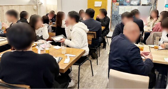 集客状況が思わしくない状態が続いていたため、WEBサイトの告知文を変更するとともに、当社主催のパーティーに参加された方に対して、会場で直接告知をおこないました。その結果、20名以上の集客を達成することができました。