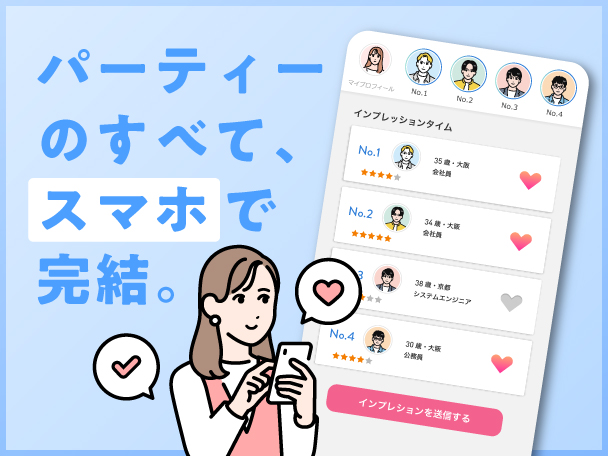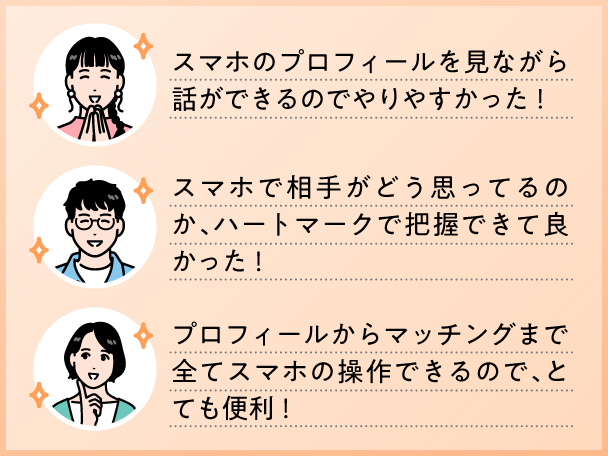 ☆プロフィール入力~マッチングまで、スマホ完結で楽々参加♪