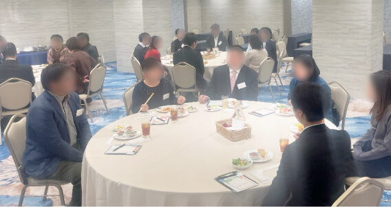 イベントの冒頭では、参加者の皆さまにグループに分かれてご着席いただき、お食事を楽しみながら全員と交流していただきました。彩り豊かな料理と、温かみのあるカジュアルな店内の雰囲気が参加者の緊張を和らげ、趣味や最近のマイブームといった話題で自然と会話が弾んでいました。
